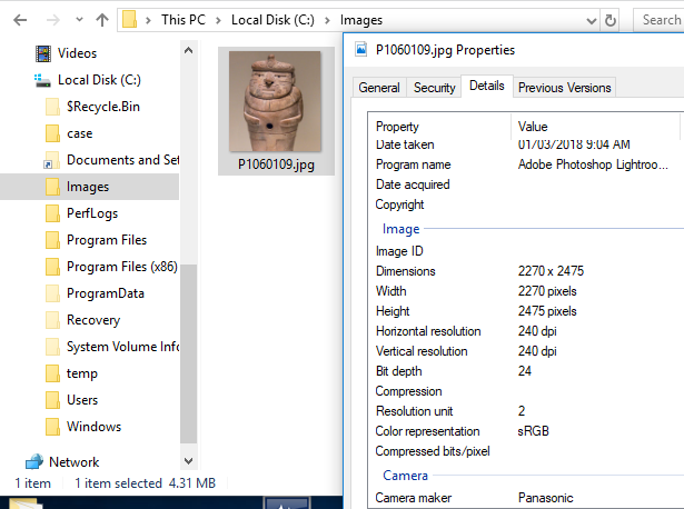サンプルJPEGファイルを準備します。このJPEGファイルはEXIF情報を含んでいます。